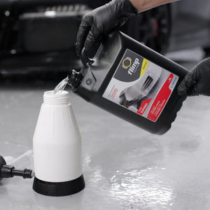 A Espuma (Snow Foam) foi desenvolvida para uma pré-lavagem eficaz e sem fricção direta. Gera uma espuma espessa e aderente que solta a sujidade da superfície, reduzindo o risco de swirls na pintura. Ideal para uso com lanças de espuma ou sistemas automáticos de lavagem.